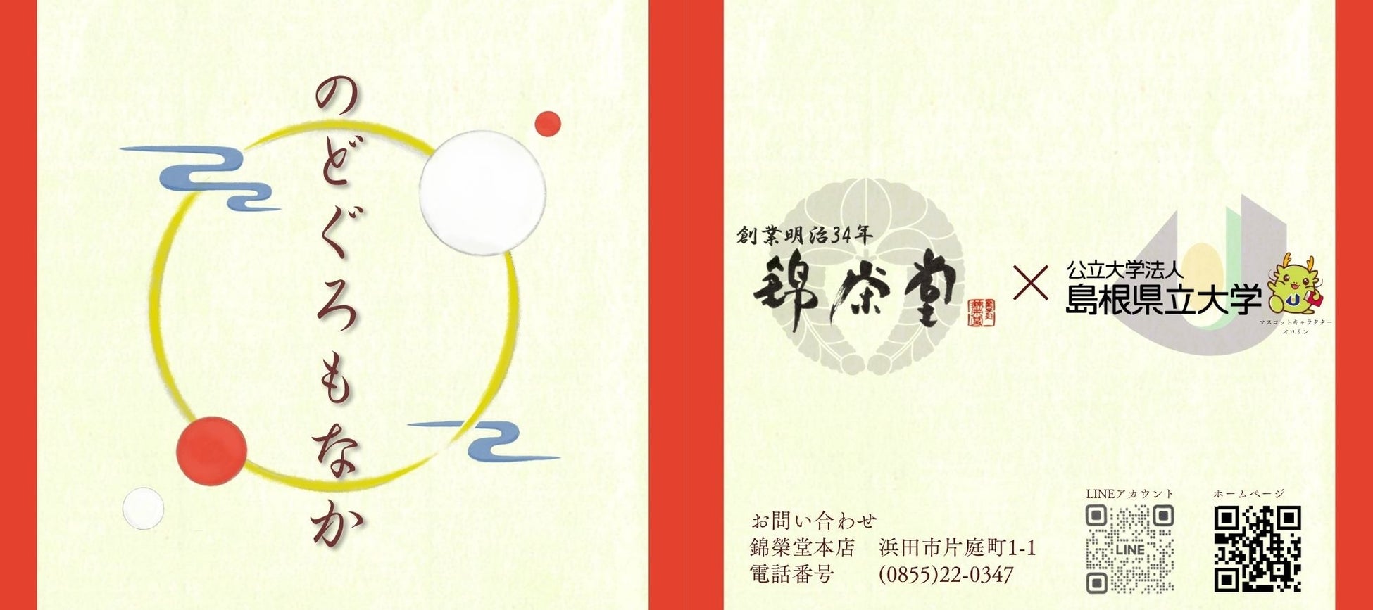このプロジェクトは、島根県立大学地域政策学部地域づくりコース3年生の豊田悠希さん、萩本琴乃さん、浜口海寿生さんと地域政策学部の濱野靖一郎准教授、市民研究員の牛尾昭さん、地元のお菓子店錦榮堂を中心に開発しました。