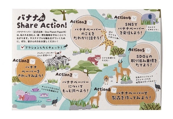 クラスの皆さんには、バナナペーパーで作った「Share Action sheet」を配布。よく見るとバナナの茎繊維が見えます。