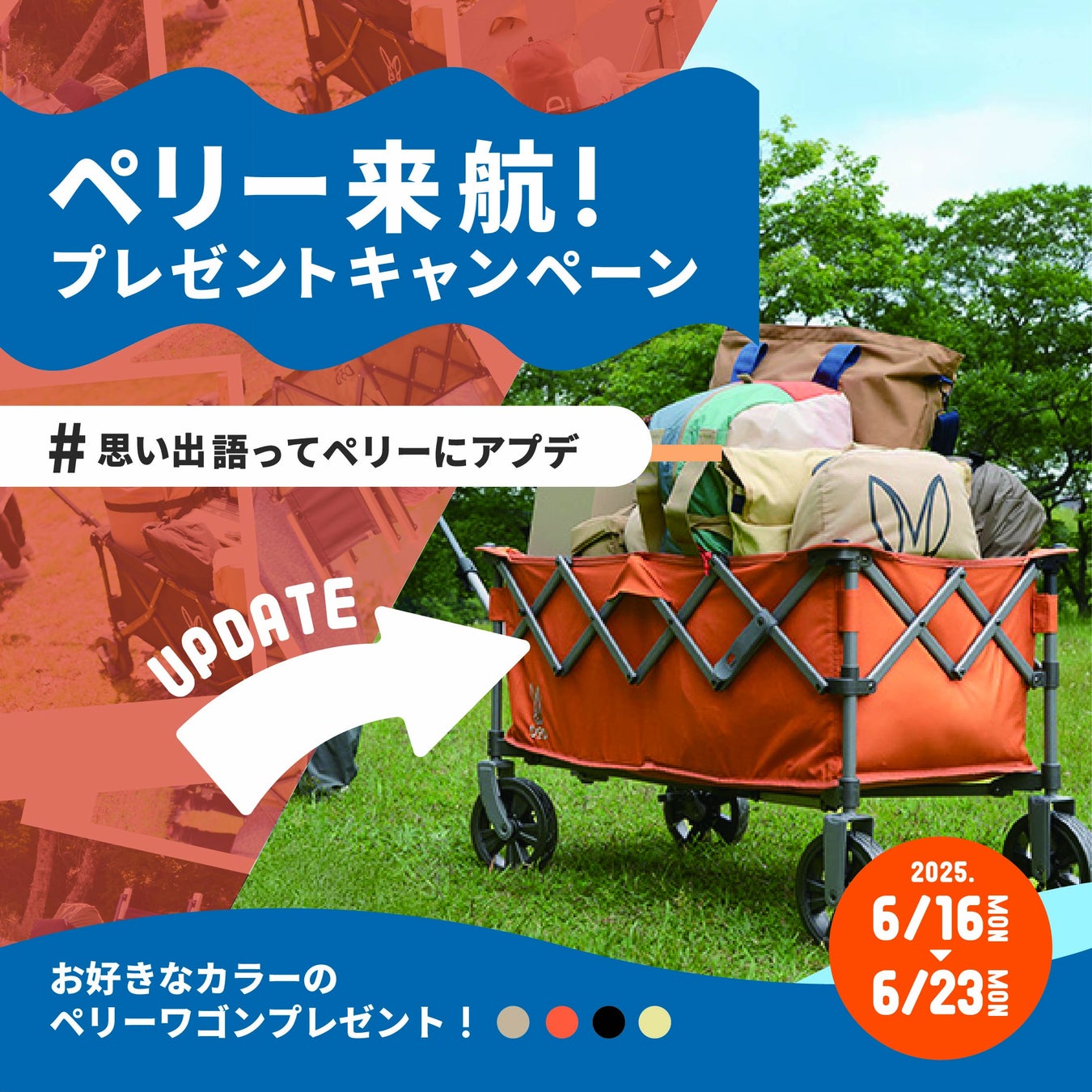 当社モデル以外の製品も対象とした“キャリーワゴン”との思い出エピソードを添えて指定のハッシュタグ(#思い出語ってペリーにアプデ)を投稿すると、その中から抽選で4名に「ペリーワゴン」が当たる企画。