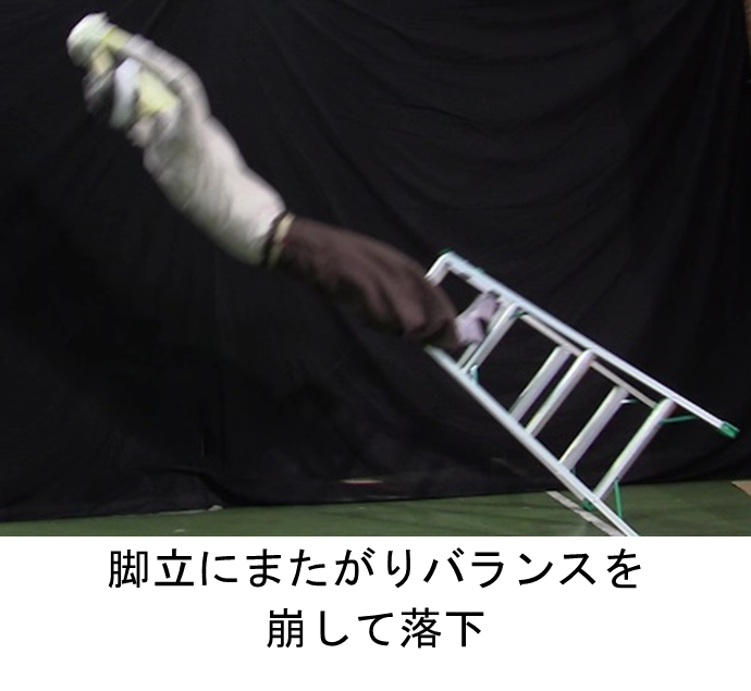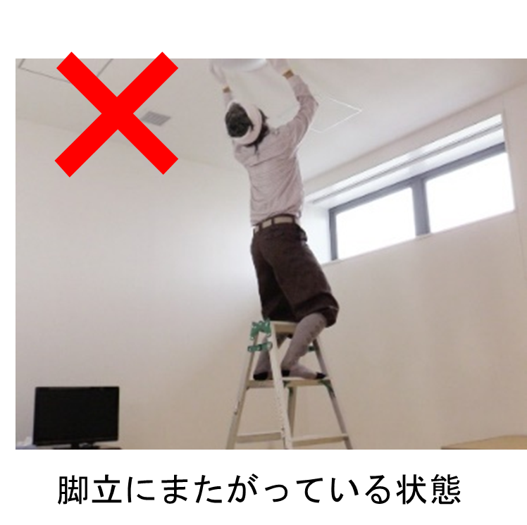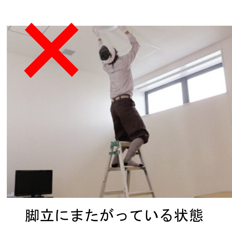 なお、脚立に乗って作業する際、無理に押したり引いたりすると反動で脚立が不安定になるので注意してください。脚立から身を乗り出すのも危険です。バランスを崩して転倒や転落のおそれがあります。