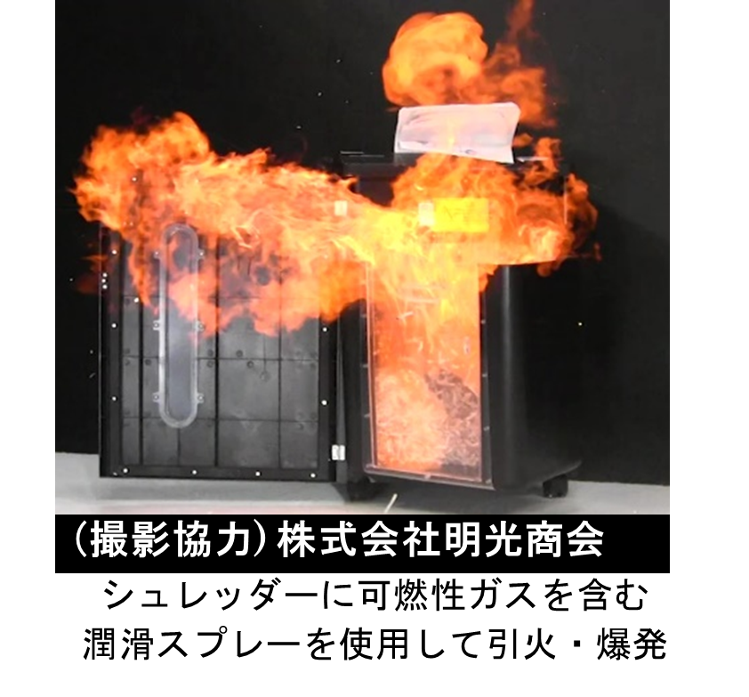 シュレッダー「1.可燃性スプレーを使用して爆発」
