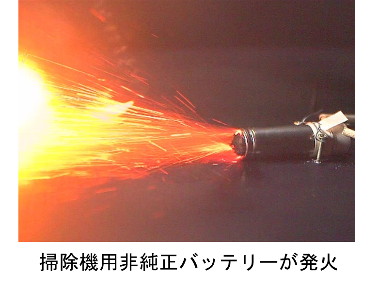 電気用品安全法の技術基準を満たしていないまま販売されているバッテリーもあり、基準で求められている過充電保護装置などの安全機能が働かずに事故につながるおそれがあります。