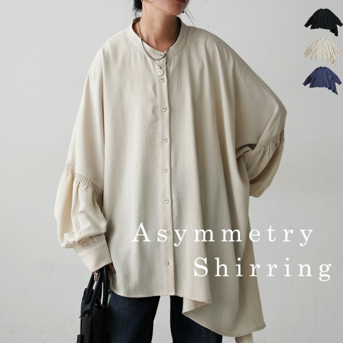 シャーリング袖 xアシンメトリーな裾で雰囲気たっぷり。