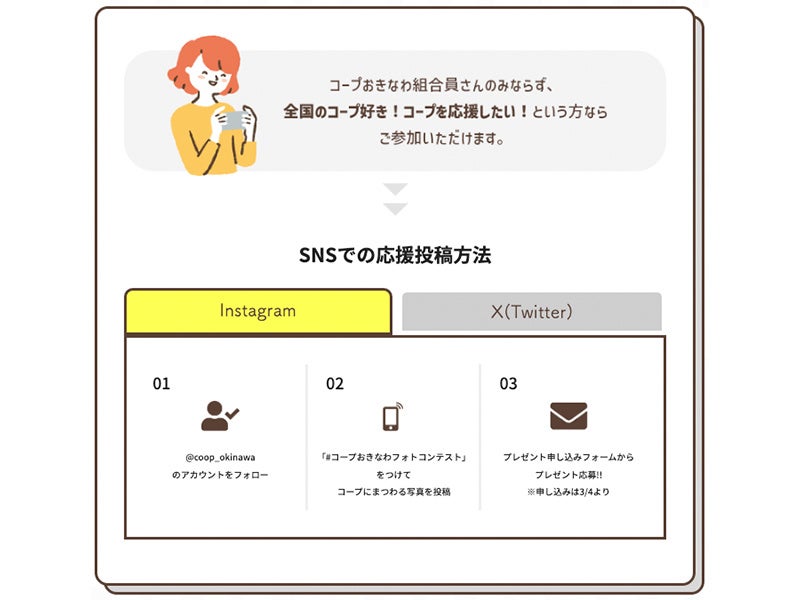 1.コープおきなわのInstagramまたはX(Twitter)をフォロー