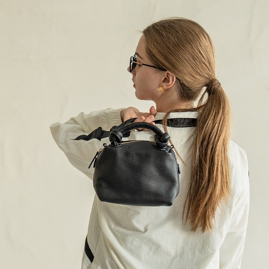 りんごを思わせるころんと丸いフォルムの、相棒バッグ。