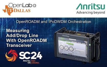 アンリツ株式会社(社長 濱田 宏一)は、テキサス大学ダラス校(UTD)との協業により、2024年11月17日から11月22日まで米国アトランタで開催される国際会議Supercomputing Conference 24 (SC24)で、ネットワークシステムの展示に参画いたします。柔軟なネットワーク構築を可能にするOpenROADM[※1]と大容量データ伝送を実現するIPoDWDM[※2]を組み合わせた、ネットワーク全体の制御および品質モニタを行うオーケストレーションシステムをデモ展示します。アンリツは、将来の自動・自律ネットワーク構築に向けたシステムの発展に貢献してまいります。