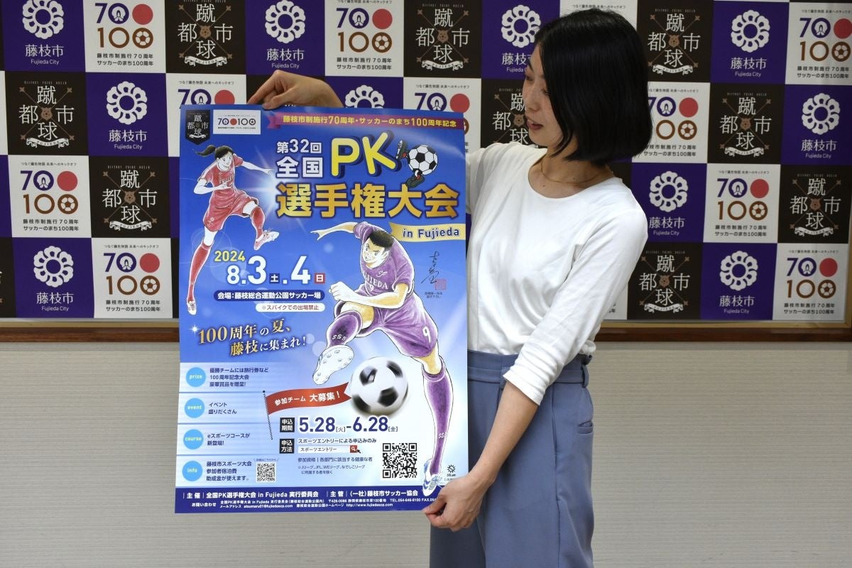 ・サッカーのまち100周年記念事業の一環で描き下ろされた高橋陽一氏によるオリジナルキャラクターをポスターに使用し、全国にPK選手権大会の開催をPRします。