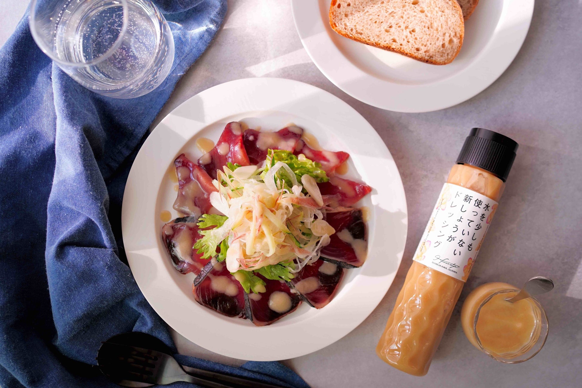 サラダ、おろしうどん、冷しゃぶ、焼き魚、焼き茄子、鰹のたたきやローストビーフにもオススメ。鍋や素麺の味変にも◎。醤油・出汁・めんつゆと相性抜群。いつもの料理がワンランクアップする万能ドレッシングです。