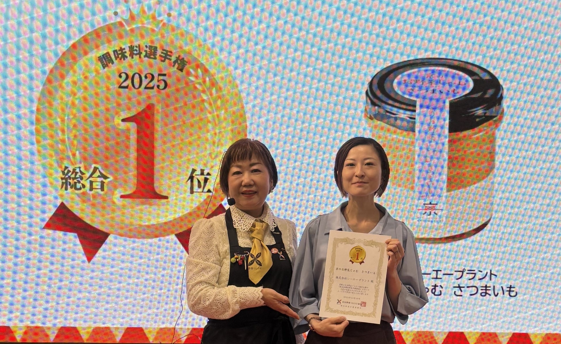 全国各地の調味料からNO.1を決める「調味料選手権」の発表会が10月19日、大阪・阪神梅田本店「食祭テラス」で開かれ、エントリー264品の中から『第16回調味料選手権2025』総合第1位が決定。NO.1の栄冠は、京都府の「京のお野菜じゃむ さつまいも」に輝きました。2位は広島県の「燻製だし醤油70ml」、3位は群馬県の「水を少しも使っていない新しょうがドレッシング」が選ばれました。