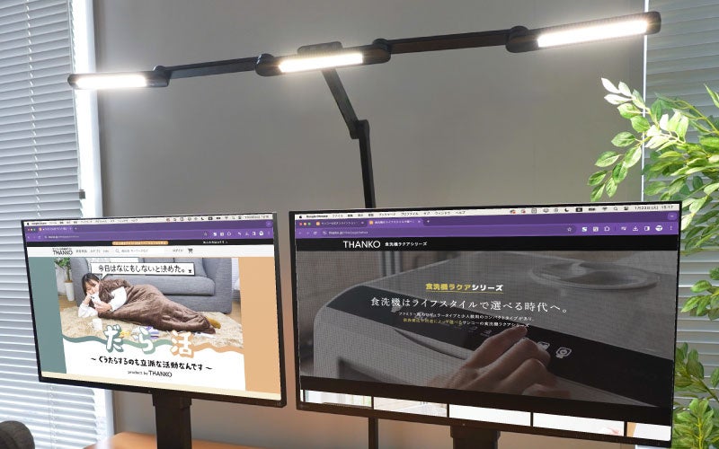 モニター2台でも広々照らせるクランプ式でワイドな3面LEDライト