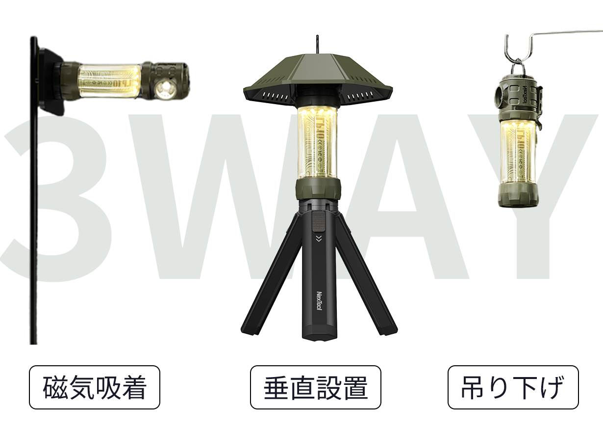 吸着・吊り下げ・持ち歩く、シーンに合わせて使える多機能LEDランタン