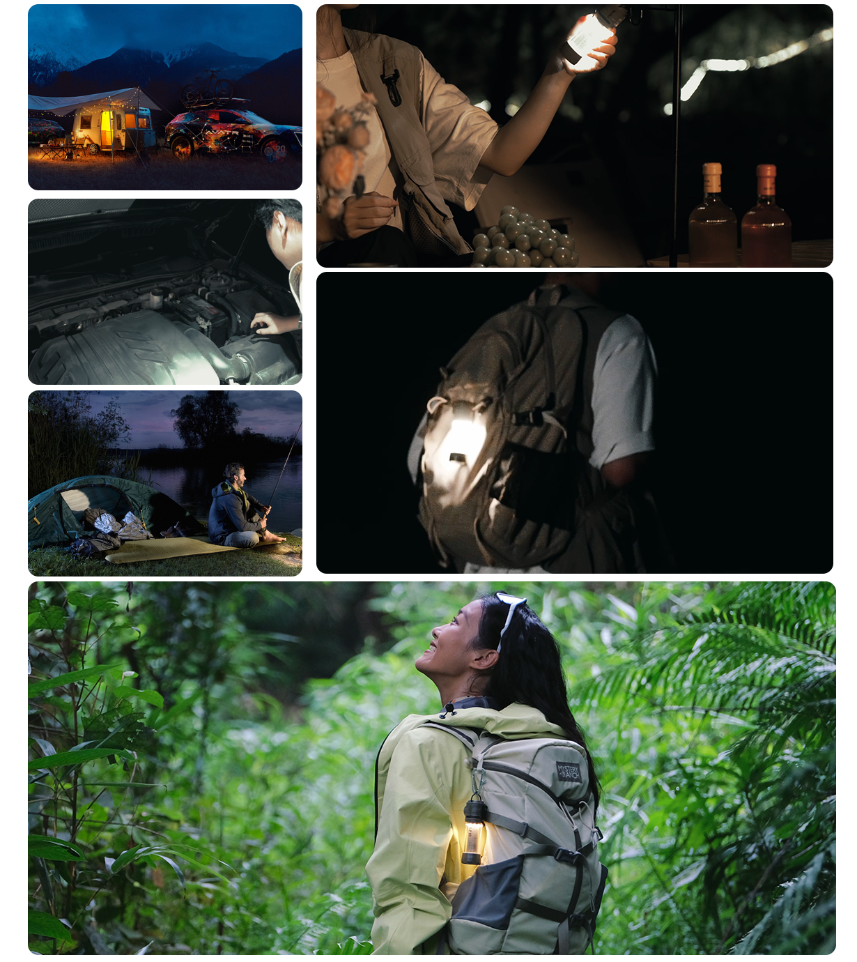 本製品は汎用性の高い1/4インチネジ穴を備えており、三脚に取付け垂直に立てて設置できます。夜間の調理や食事などのシーンに最適です。周囲を明るく照らしてくれるので、手軽に快適な照明を確保できます。