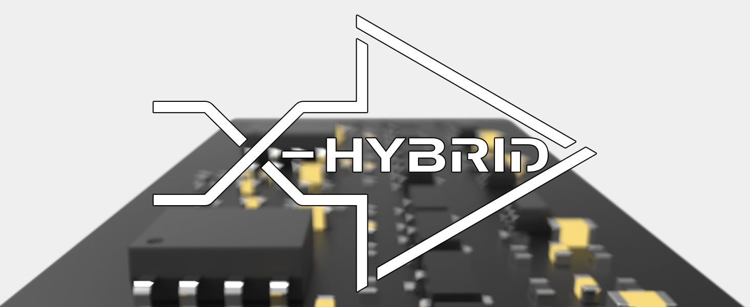 X-Hybrid AMPは、ディスクリート入力段、ディスクリート出力段、オペアンプの3段ステージで構成された、これまでの製品に採用してきたNFCAモジュールに代わる、ハイブリッドヘッドフォンアンプ回路です。