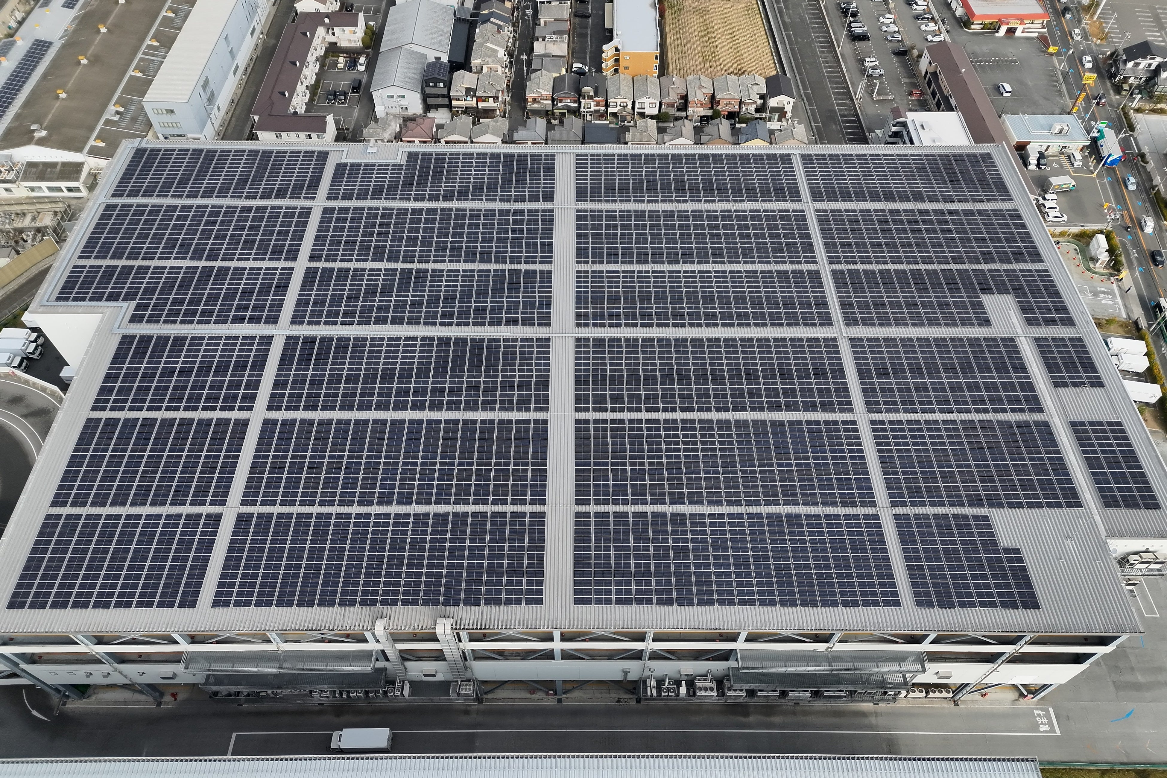 オンサイトPPAモデルを活用した自家消費型太陽光発電システム 発電容量:2,290.75kW(Jinko Solar製 595W×3,850枚) モジュール種別:単結晶 |