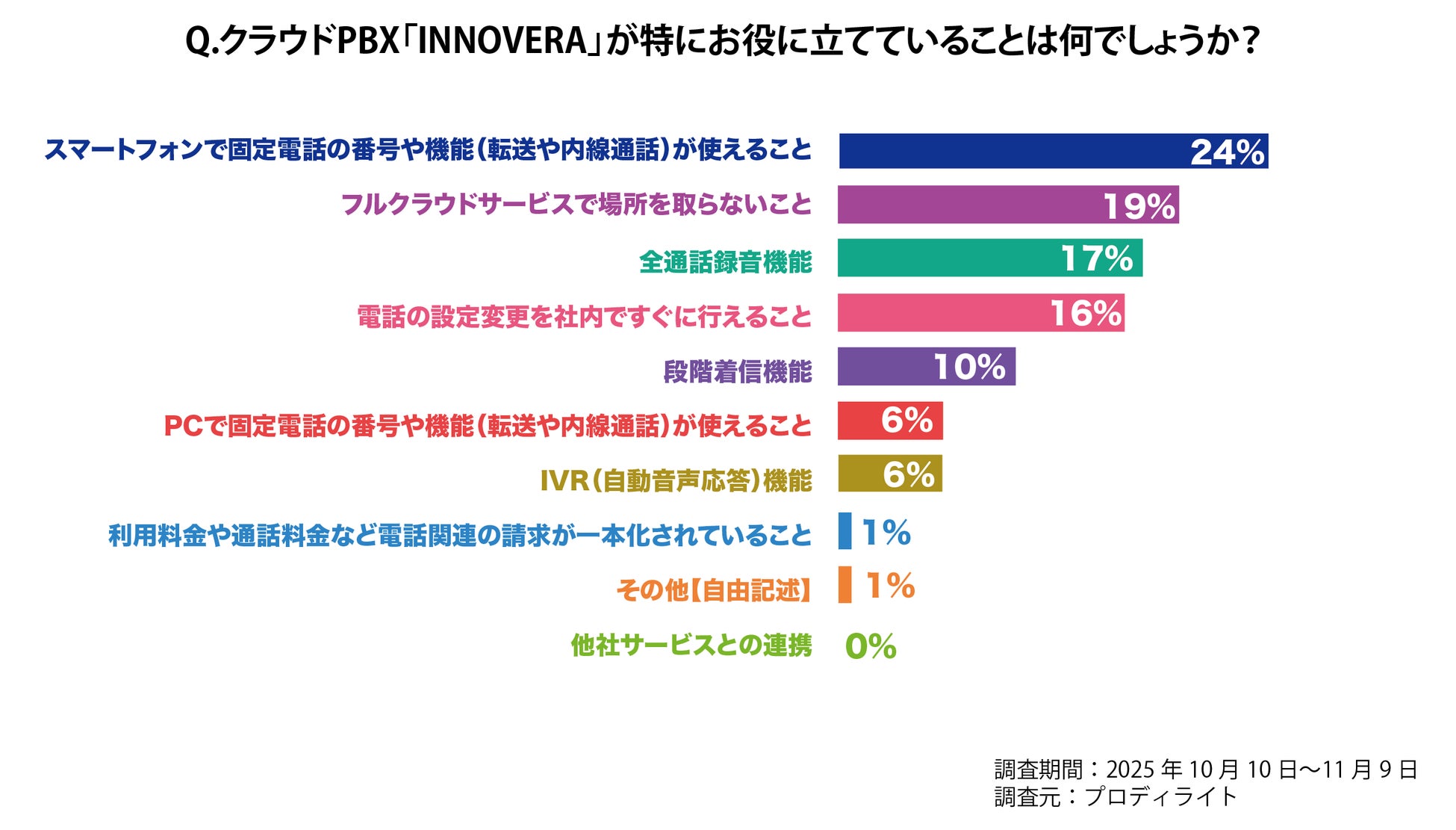 それに先駆けてプロディライトは、自社のクラウドPBX「INNOVERA 2.0」の導入企業1,630社を対象に、サービスの向上とクラウドPBXへの意識調査を目的としてアンケートを実施しました。前回に引き続きその結果を公開いたします。