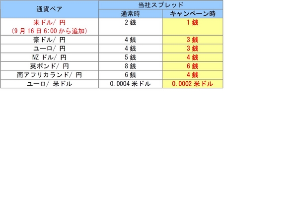 相場や市場の状況等により、本キャンペーンの提示スプレッドにおいても大きくなることがありますのでご留意ください。