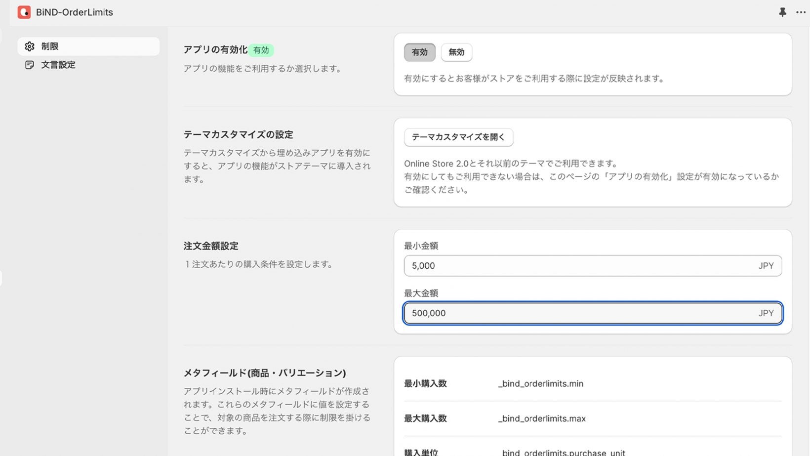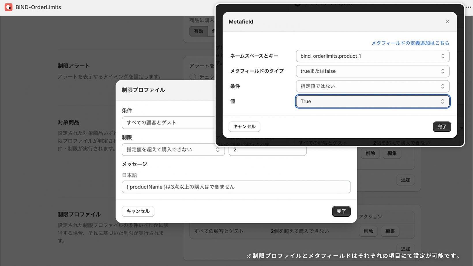 なお、BiNDecの購入制限は、BiNDecのサービスを提供しているShopifyストアで利用できるアプリケーションです。ストア構築時に必要に応じて導入することができます。