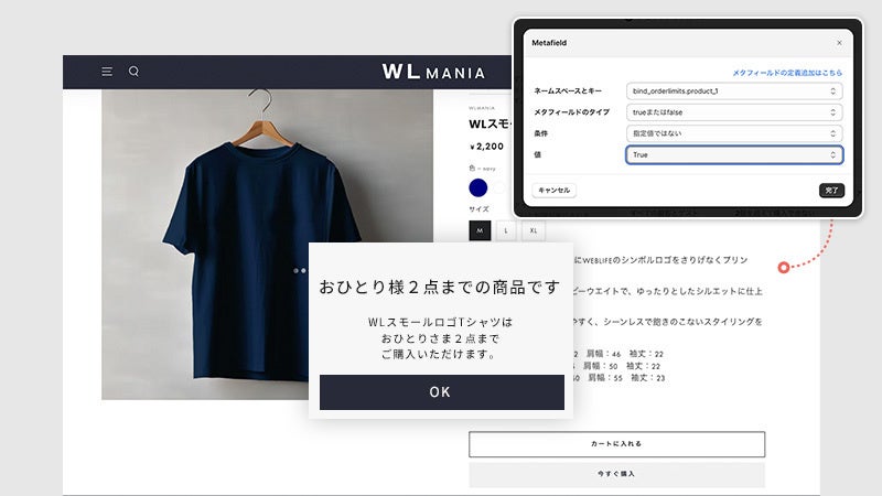株式会社ウェブライフ(本社:東京都港区、代表取締役:熊崎隆人、山岡義正)は、Shopify(ショッピファイ)の法人向けEC構築運用サービス「BiNDec(バインド・イーシー)」において、購入数や購入金額を条件によって柔軟に管理できる新しいShopifyアプリ「BiNDec|購入制限」をリリースしました。本アプリは、注文ごとの制限をカスタマイズし、ビジネスニーズに応じた最適な販売管理を実現いたします。