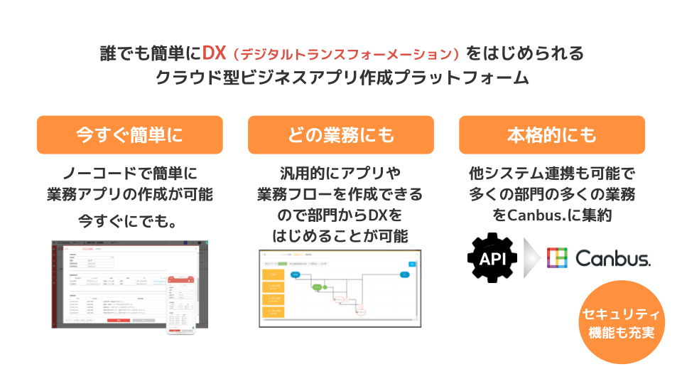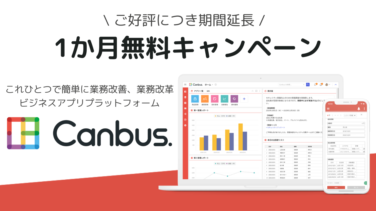 このような状況を受け、企業の迅速なDXを推進するため、複雑なプロセスや時間を要さずにDX化が可能なノーコードツール『Canbus. 』を1か月無料でお試しいただけるキャンペーンを開催することといたしました。