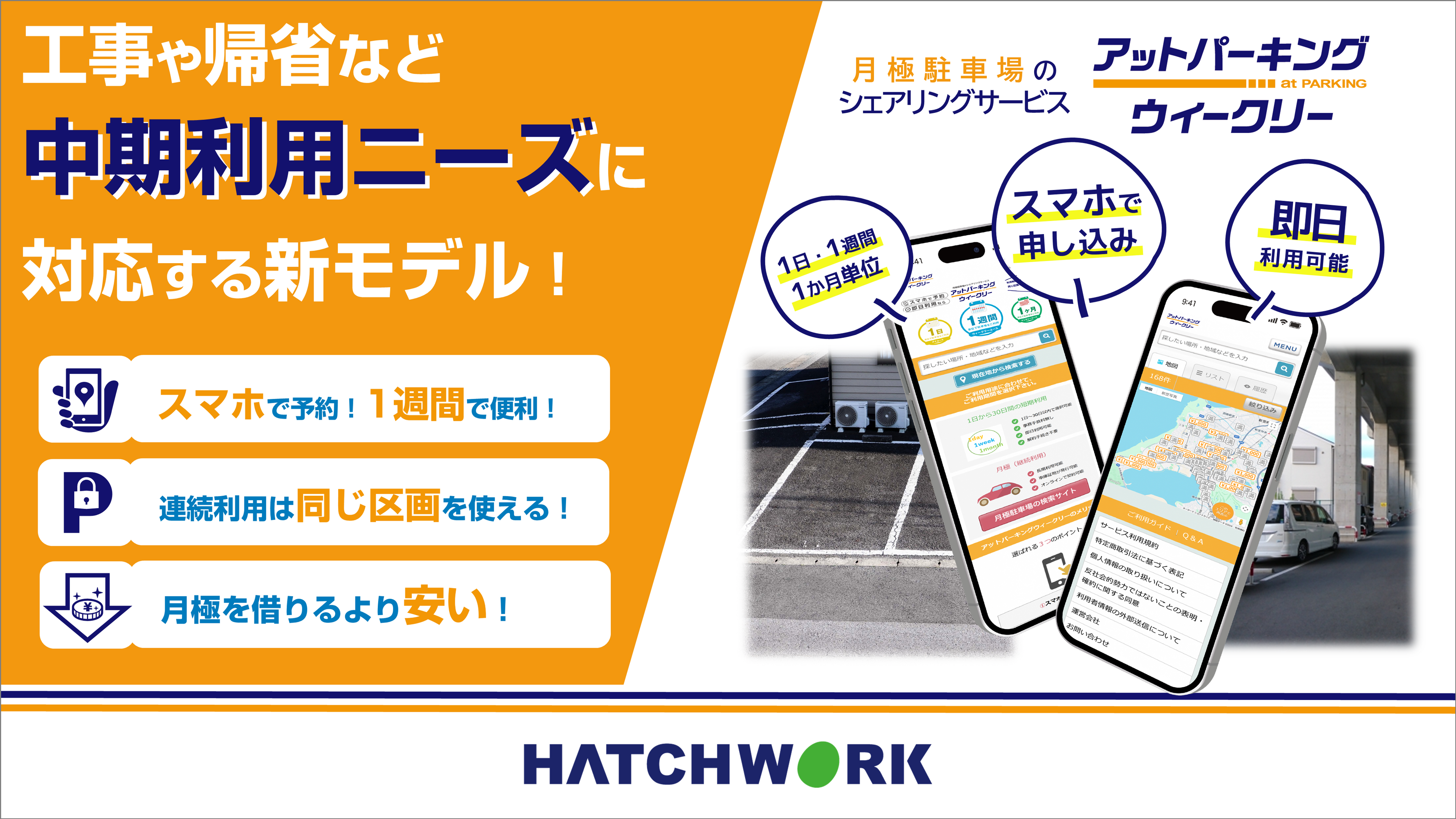 ※「アットパーキングウィークリー」は、月極駐車場オンライン管理支援サービス「アットパーキングクラウド」の新機能として提供されています。