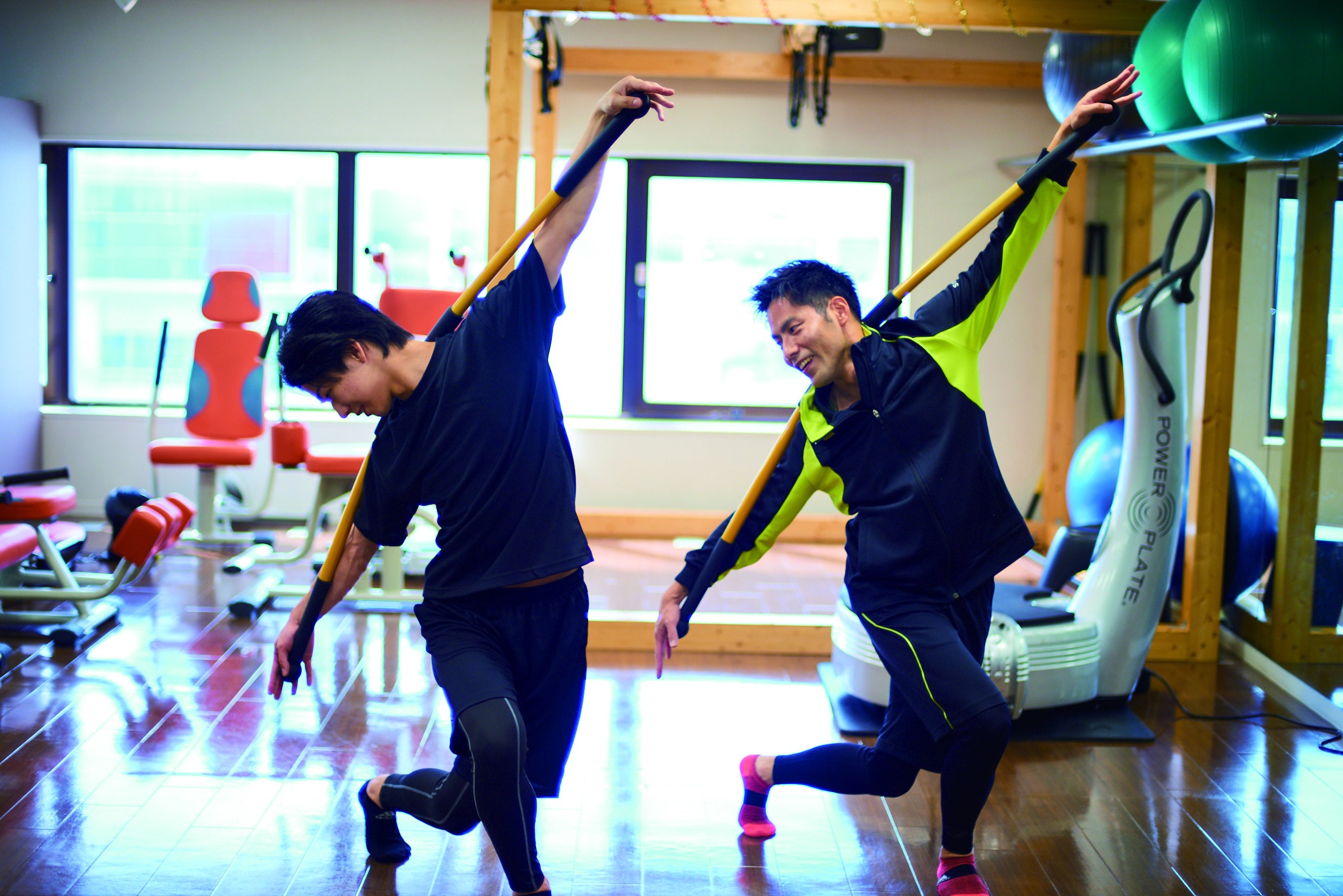 航空力学に基づいて開発された特殊なバーを使用し、可動域を広げていくのをサポート。