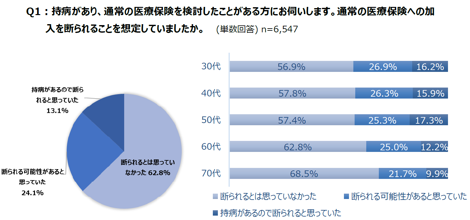 持病がある人の半数以上が「通常の医療保険加入を断られるとは思っていなかった」断られたうちの約4割は加入をあきらめる結果に