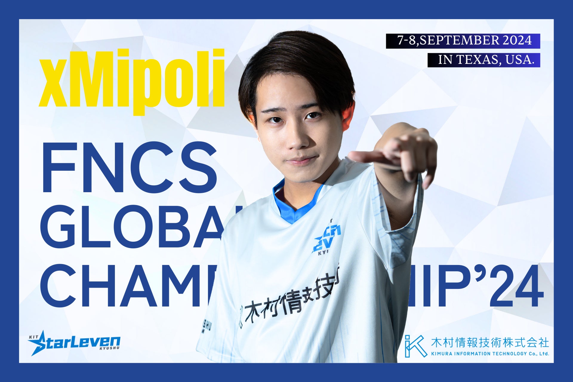木村情報技術株式会社(本社:佐賀県佐賀市、代表取締役:木村 隆夫、以下「木村情報技術」)に所属するプロeスポーツプレイヤー「まいぽり(xMipoli)」選手が、9月7日~9月8日(米国時間)に米国テキサス州フォートワースで開催される、世界的人気ゲーム「FORTNITE」の世界大会である『FNCSグローバルチャンピオンシップ 2024』に、アジア代表として出場しますのでお知らせします。
