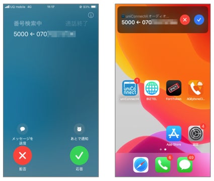 これまで、別の電話端末が鳴動している場合、uniConnectアプリで「9+鳴動している端末の内線番号」をダイヤルプッシュすることで、代理応答が可能でした。