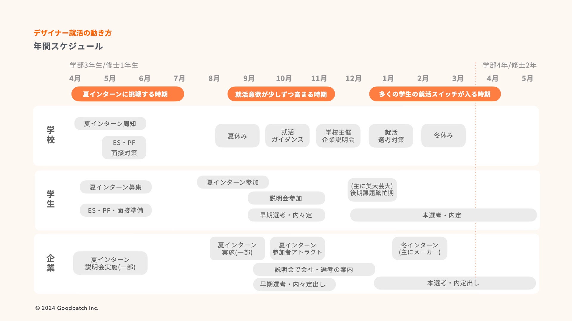 【デザイナー就活の特徴(年間の動き)】