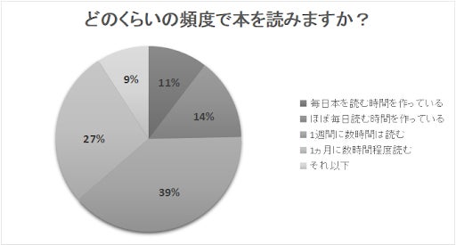 次に、本を読む習慣がある人に「どのくらいの頻度で本を読みますか?」というアンケートを行いました。すると、一番多い回答は「1週間に数時間は読む」で39%でした。