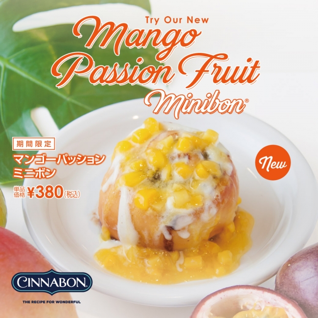シナモンロール専門店「Cinnabon/(以下:シナボン)」を運営するブランドパートナーズ株式会社(本社:東京都港区)は、アツアツのシナモンロールにダイスカットしたマンゴーをトッピングした『マンゴーパッションミニボン』を、2017年7月1日(土)~2017年8月末日(予定)まで、4店舗にて期間限定新発売いたします。