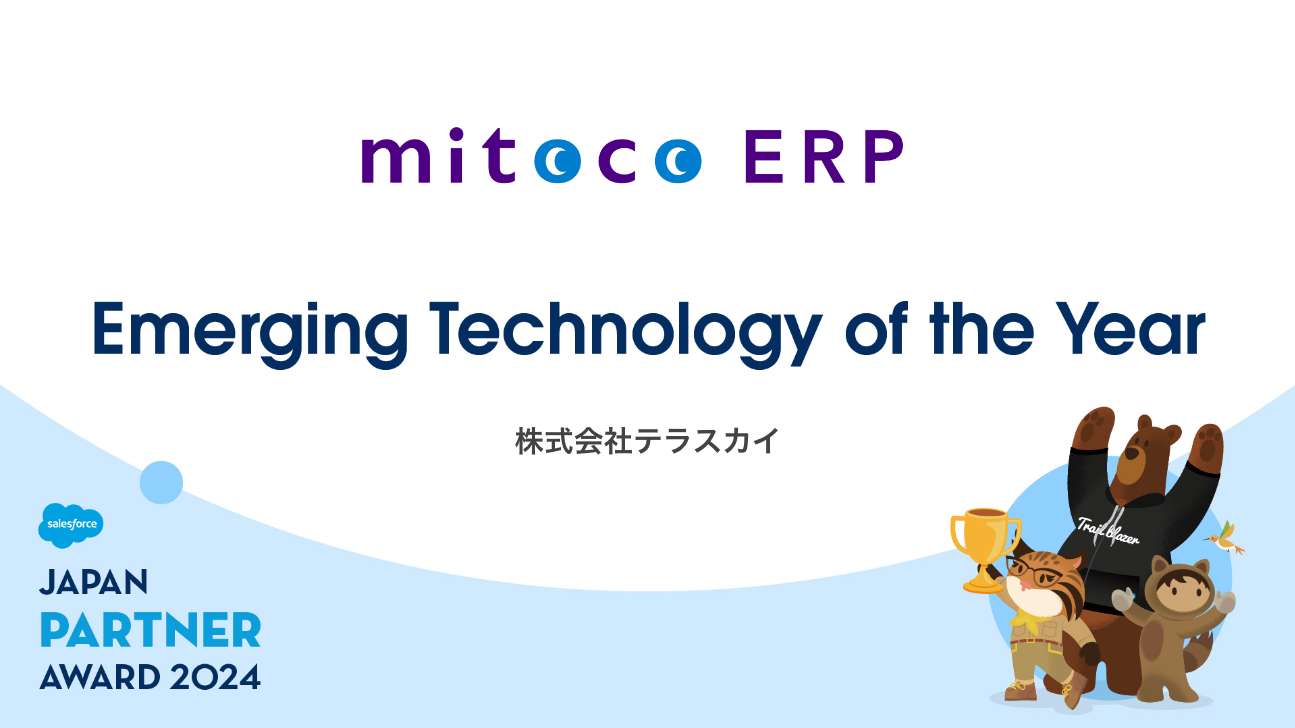 受賞理由は、Communication & Media業界での協業実績におけるビジネス規模、ビジネス成長率に加え、認定資格取得数、Navigator取得数を総合的に判断し特に秀でた実績を残されたこと、また、mitoco ERPの開発においてSalesforceが提供する先進的なテクノロジーを活用しながら製品化した実績によるものです。