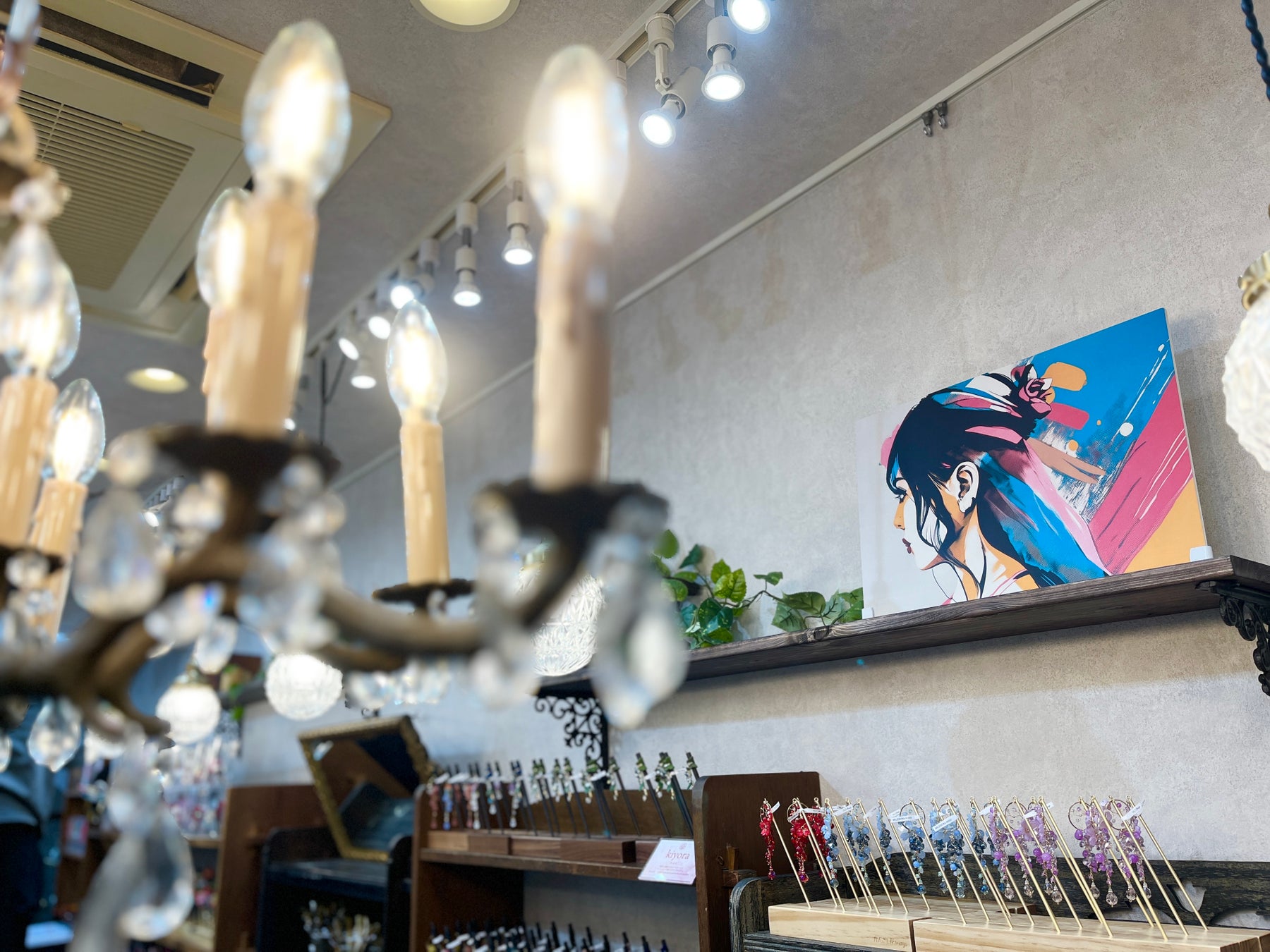 店内は、趣を感じさせる内装を活かしつつ、落ち着いた照明と木の温もりを基調とした設えで、訪れる人がゆったりと商品を手に取れる空間を演出しています。観光の途中でふらりと立ち寄りやすく、特別なお土産や自分だけの和小物との出会いをお楽しみいただけます。