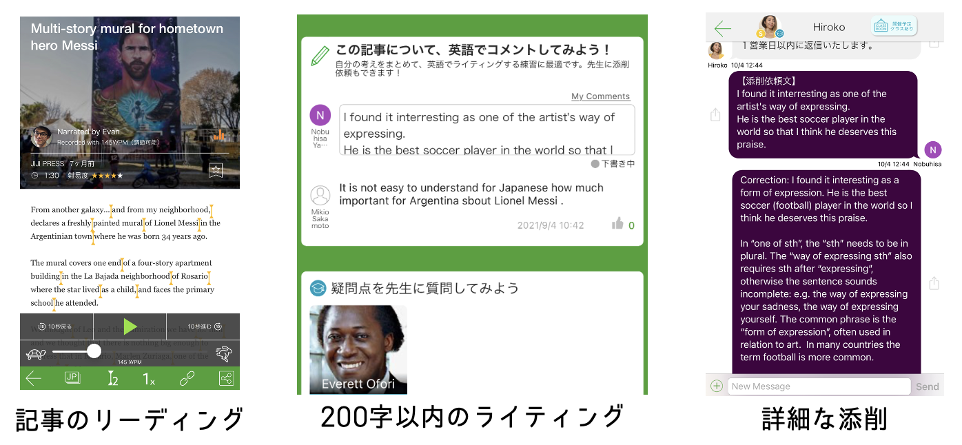 そのため株式会社ポリグロッツは従来の英文記事のリーディング、リスニングサービスに加え、AIによる発音チェックとライティング添削を標準搭載した高等学校向けプログラムをスタートさせました。