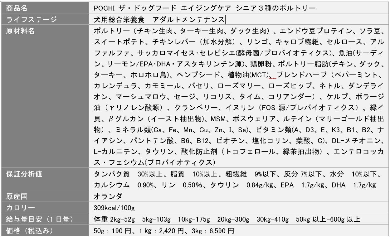 《POCHI》『POCHI ザ・ドッグフード エイジングケアシニア』を新発売