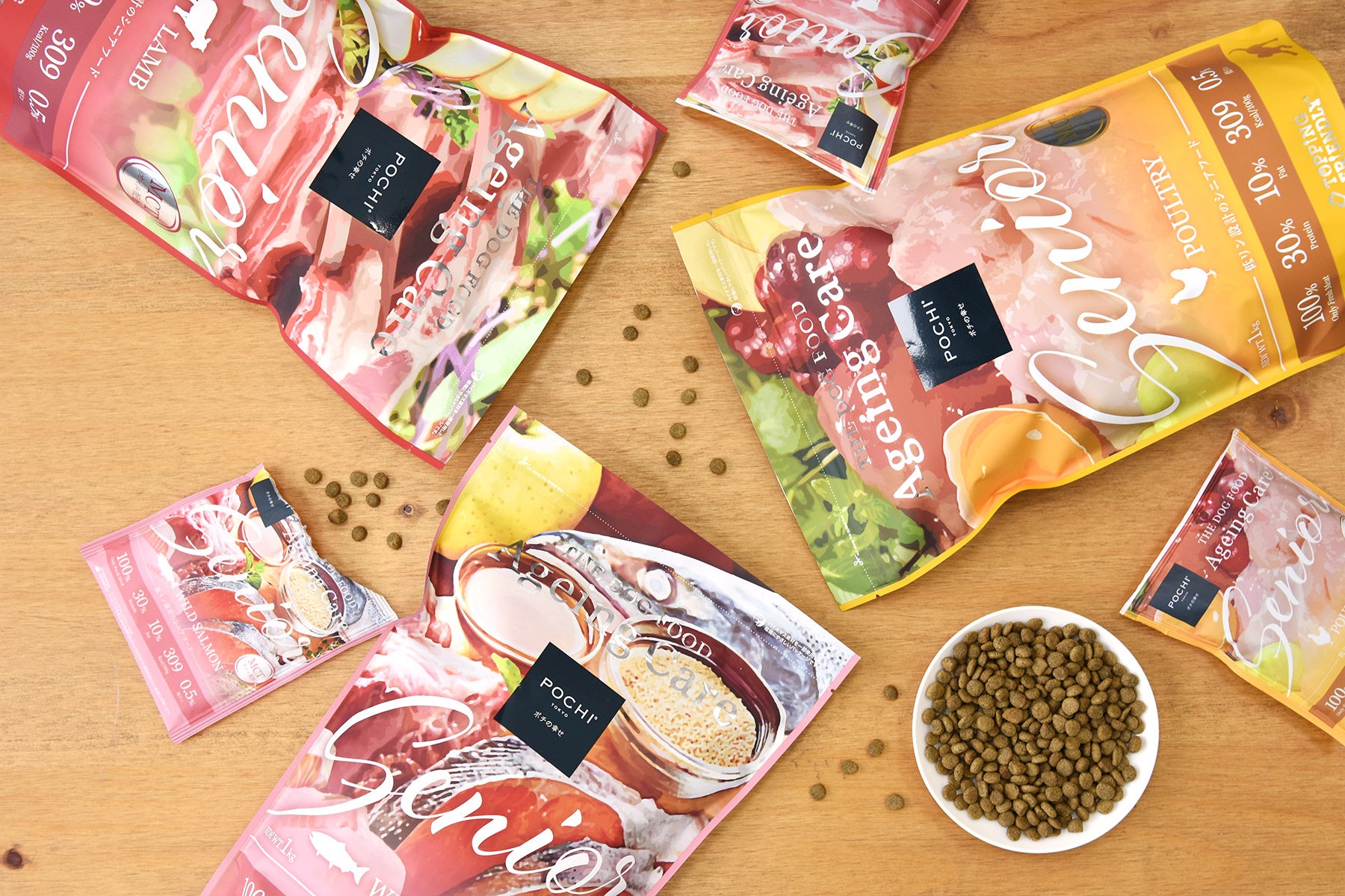 2020年より、中年期の入り口である3歳から始められる新しいコンセプトのシニアフード「POCHIザ・ドッグフード エイジングケア」シリーズを販売しておりましたが、この度、健康長寿をさらに目指して低リンタイプへとグレードアップし、『POCHIザ・ドッグフード エイジングケアシニア』となって新登場です。
