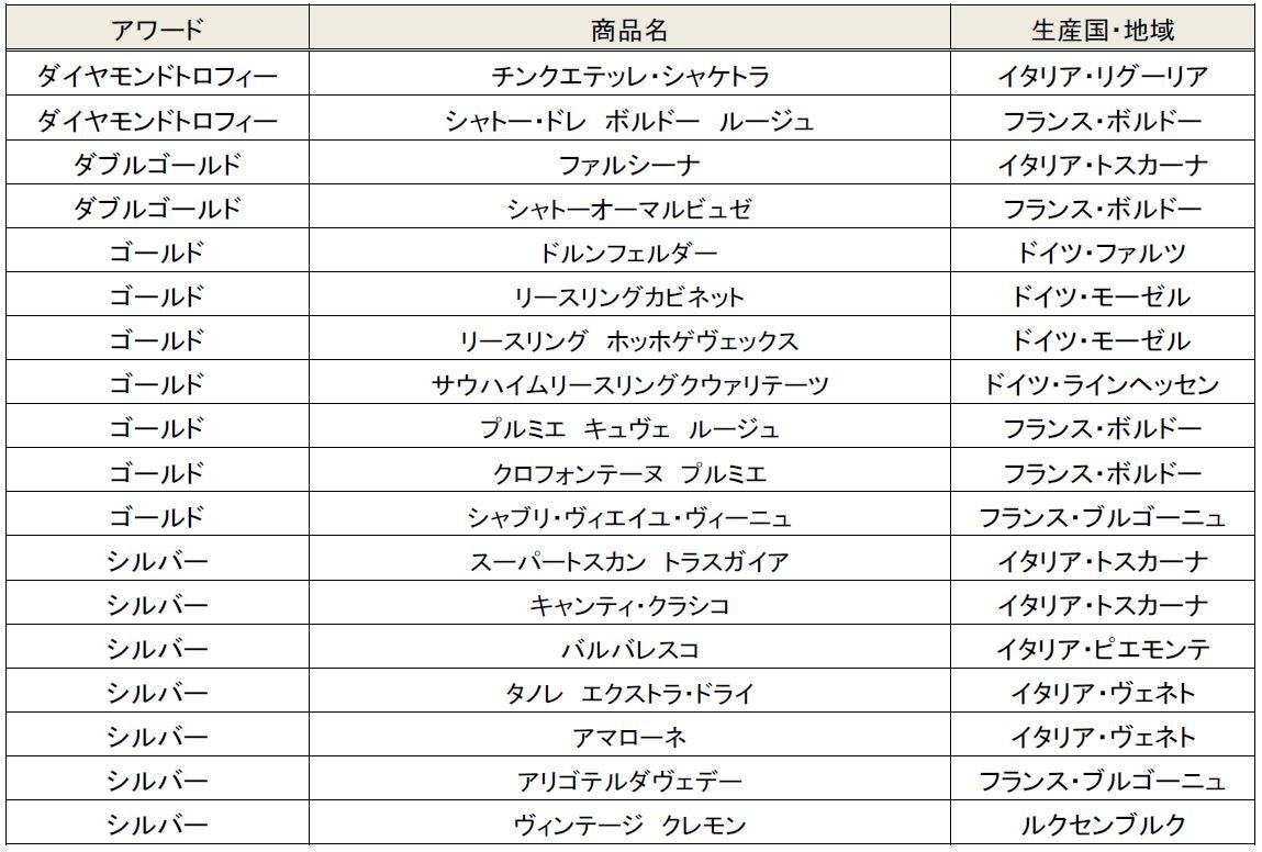 また、その他にも「ファルシーナ」「シャトーオーマルビュゼ」がともにダブルゴールドを受賞し、計18商品が各賞を受賞しました。