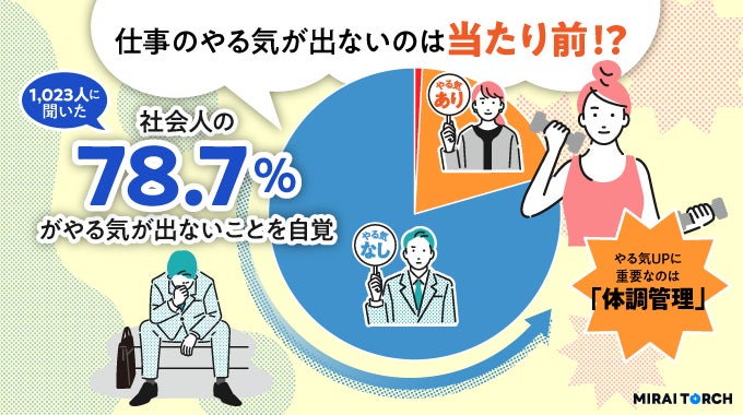 今回『ミライトーチ』にて本調査をまとめた記事では、仕事のやる気に関わる要素ややる気が出ないときの対処法を深堀りました。やる気が出ないことがあるのは当たり前であっても、前向きになるための自分なりの方法を見つけるヒントが詰まった結果となります。