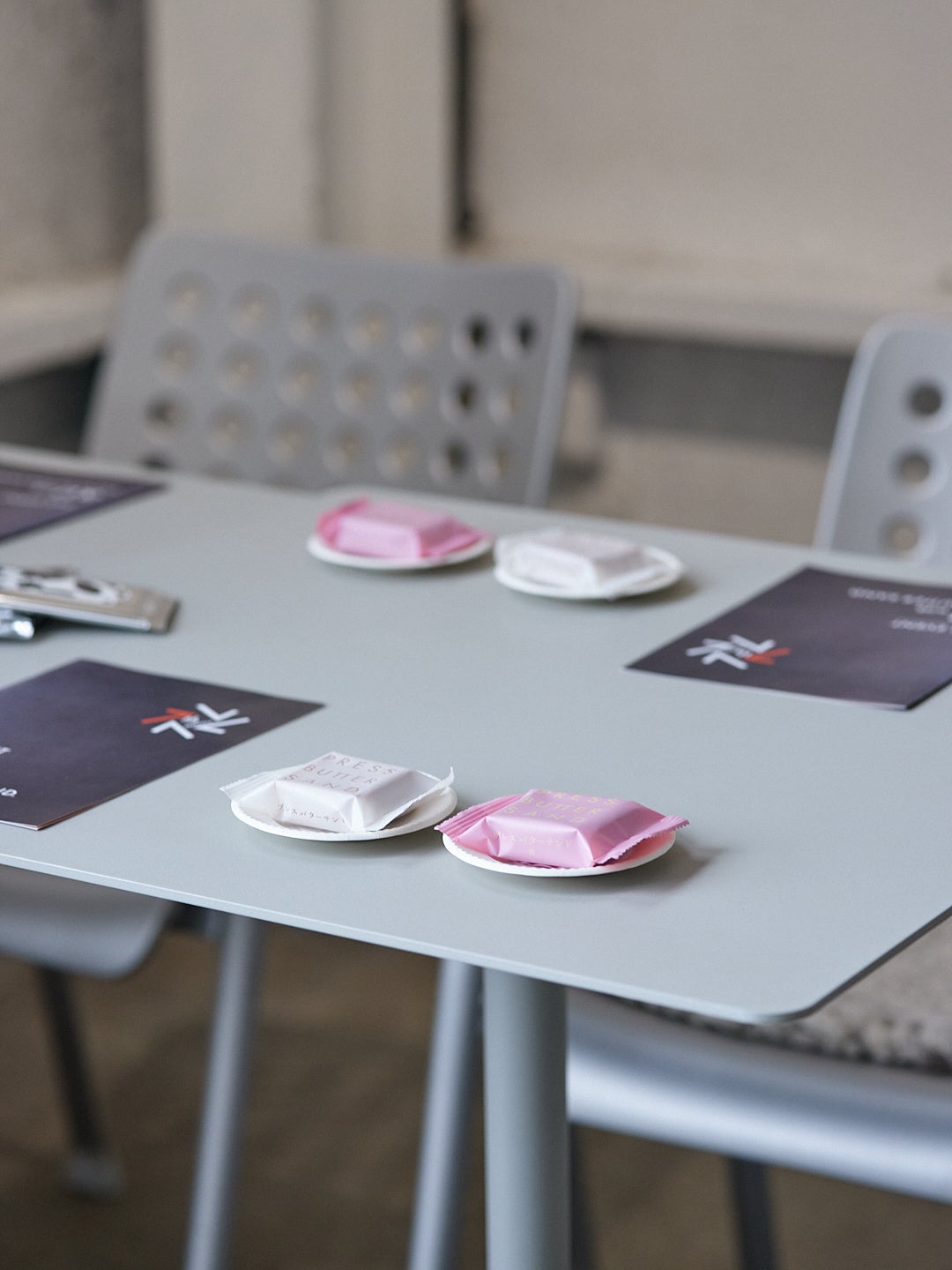 トークショー中には大変なことの一つとして、開発担当の立岩氏が工場への落とし込みについて触れる場面も。「1kgで作っていたものを100kgまとめて作ると、どうしても何かしらのトラブルが起こる」と、手作りと工場生産では味に違いが出てくることや、その微調整に時間をかけているというエピソードも上がりました。企画や開発の観点から時間をかけて丁寧に作っているブランドであることと共に、1年前から商品の開発を行う理由をファンに共有する機会となりました。