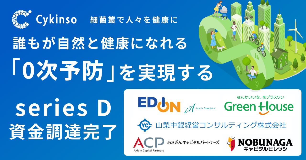 腸内フローラ検査「マイキンソー(Mykinso)」を開発・提供する株式会社サイキンソー(本社:東京都渋谷区、代表取締役:原 洋介、以下サイキンソー)は、シリーズDエクステンションラウンド 2ndクローズとして、第三者割当増資により資金調達を実施し、シリーズDの資金調達を完了しました。これにより、イノー・アソシエイツ株式会社が筆頭株主となり、同ファンドに加え、以下の各社に引受先としてご参加いただいたことをお知らせいたします。