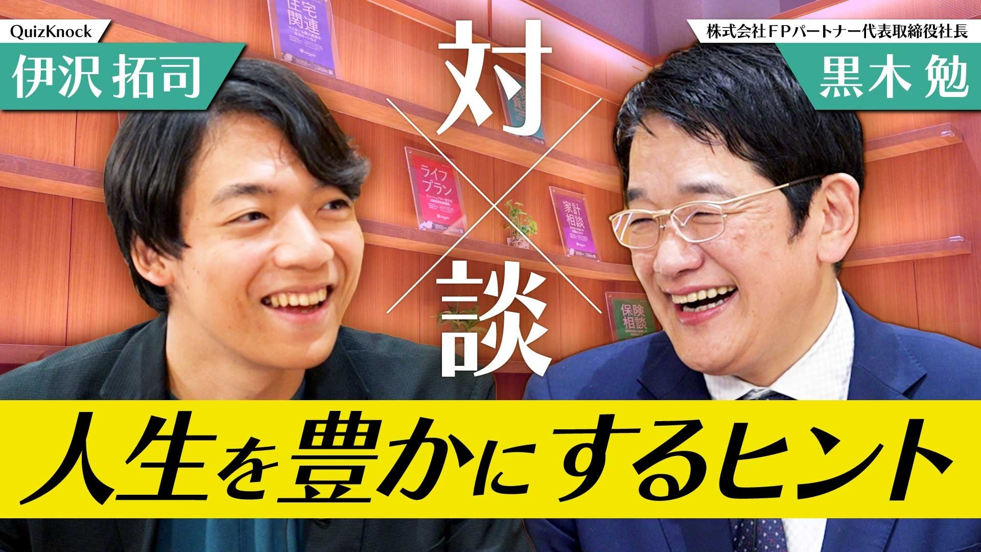 無料FP相談サービス「マネードクター」を運営する株式会社FPパートナー(本社:東京都文京区 代表取締役社長:黒木 勉)は、株式会社baton(本社:東京都品川区 代表取締役:衣川 洋佑)が運営するQuizKnock(クイズノック)伊沢拓司氏と当社黒木との対談動画「人生を豊かにするヒント」を公式YouTube上で公開いたしました。