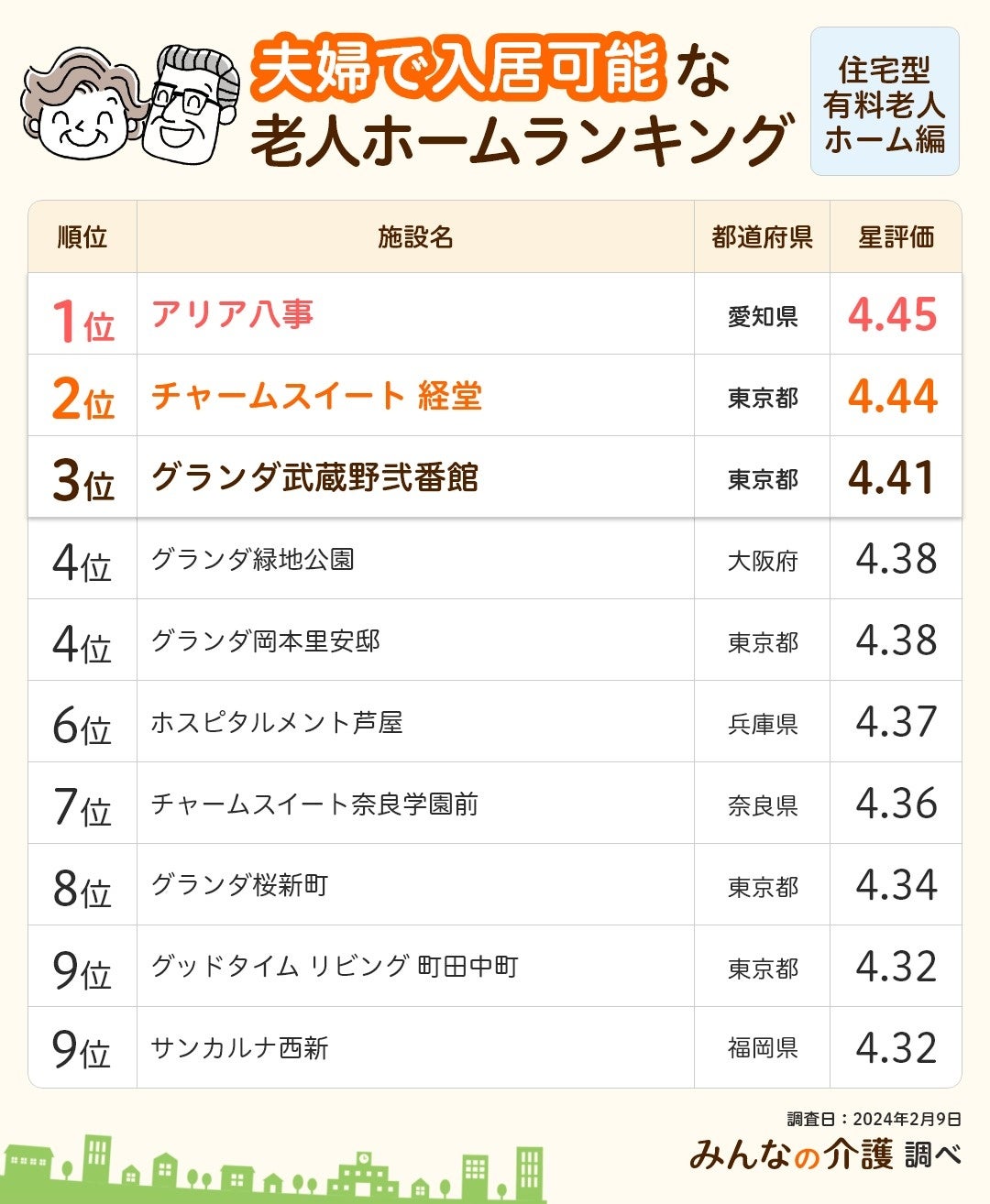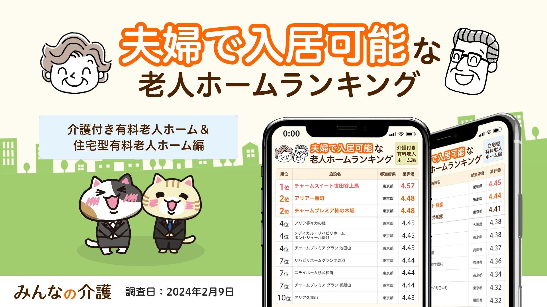 老後も仲良く夫婦で暮らしたいという方も多いかと思いますが、そんな夫婦やカップルの日がこの時期多いことにちなみ、「夫婦で入居可能な老人ホーム」のランキングをお届けします。