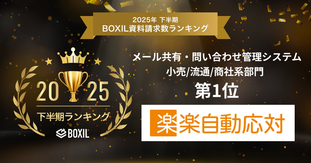 楽楽自動応対が「2025年下半期 BOXIL資料請求数ランキング」メール共有・問い合わせ管理システム 小売/流通/商社系部門1位に選出