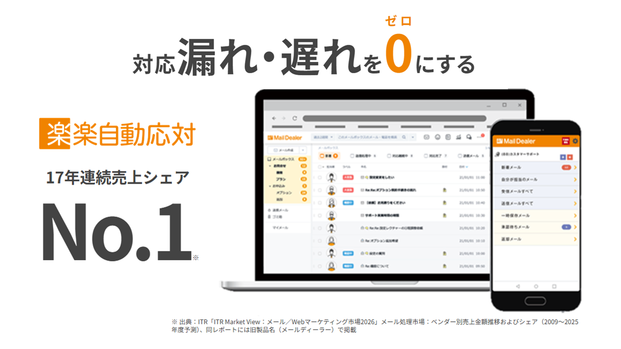 「楽楽自動応対」 公式サイト:https://www.maildealer.jp/rakurakujidootai/