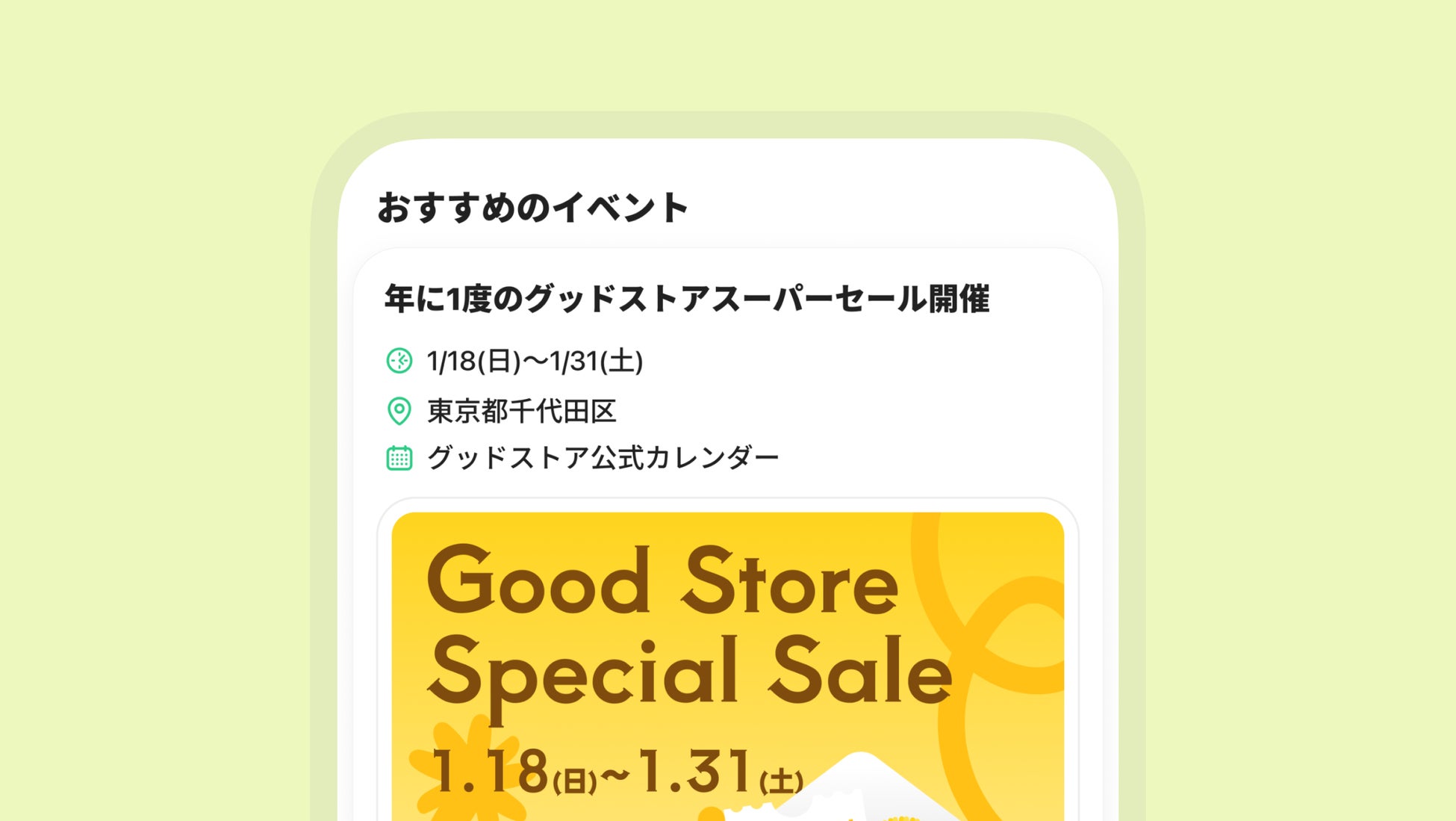 イベントやセール情報など、少し未来に実施される予定候補を提案します。気になる情報をチェックし、予定に組み込むきっかけになります。