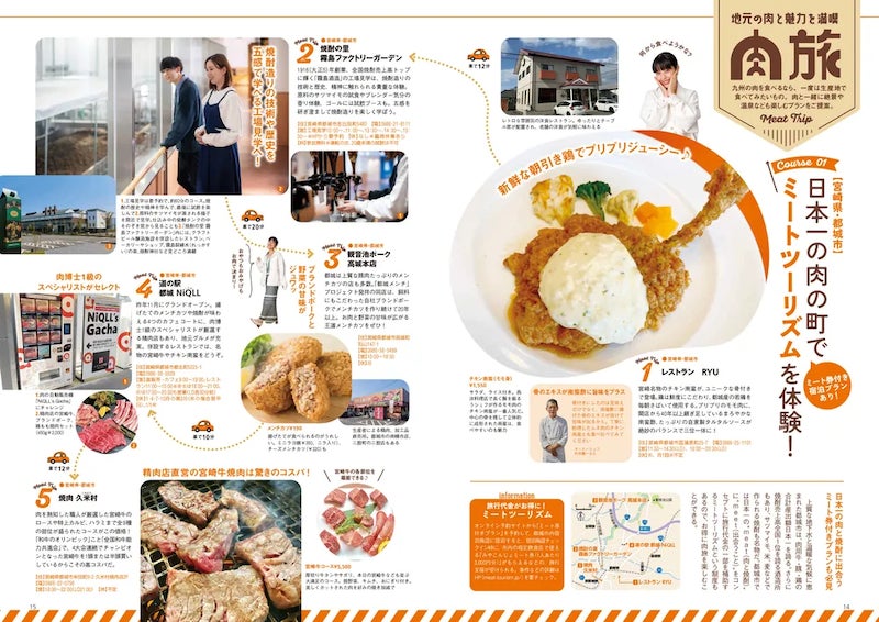 続く「肉旅」編では、宮崎県・都城市「ミートツーリズム体験」、熊本県・阿蘇市周辺「秋絶景と肉グルメ巡り」、大分県・別府市周辺「肉×温泉で贅沢旅」の、3つの旅を提案。日帰りのドライブなどで、手軽に九州の肉を味わい、観光も楽しめるスポットをピックアップしました。秋の観光シーズンに、肉を通じて九州の良さを感じてもらおうという試みです。