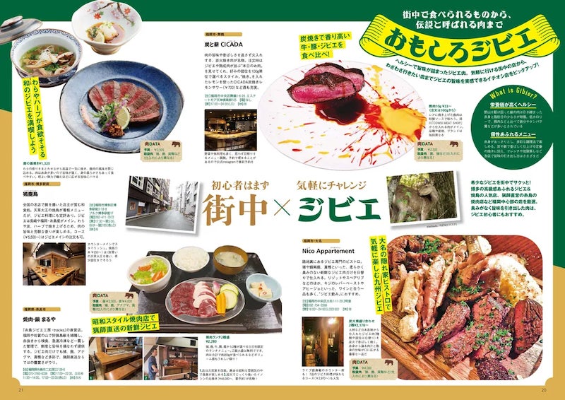 「おもしろジビエ」編は、少しマニアックにジビエを取り上げました。街中というロケ―ションで野趣あふれるジビエ料理が楽しめる「街中×ジビエ」、見た目も楽しめる「フレンチ×ジビエ」、九州の秘境ともいわれる宮崎県・西米良村で味わう鮮度が自慢の「秘境×ジビエ」ほか、5つのテーマでジビエ料理を取り上げました。ブランド肉とはまた別の視点で、九州の肉を楽しむ内容です。
