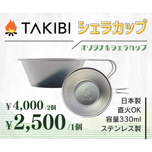 こだわりのTAKIBIシェラカップですが、2個まとめ買いでさらにお得に購入ができます。シェラカップは一人でも1つ以上持っている方も多く、家族がいるファミリーキャンパーなら複数購入をされることが多いので、2個まとめ買いをされる方ならさらにお得にご購入いただけるように価格を設定いたしました。(同一住所への発送に限り)