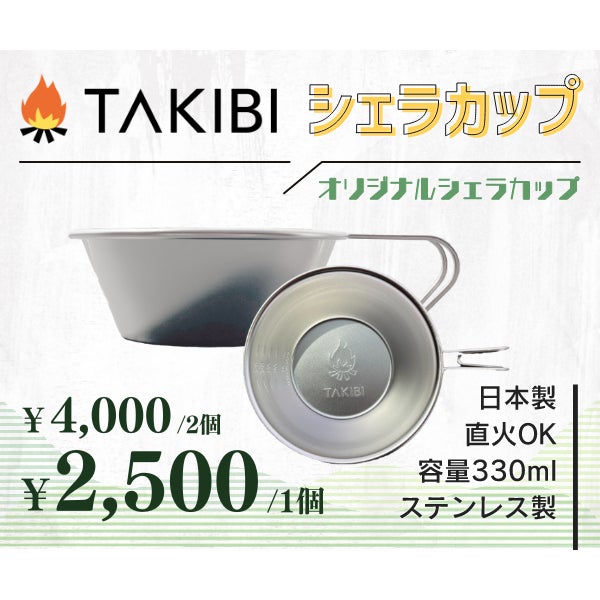 キャンプギアとして誰もが1つは持っている万能調理器具のシェラカップ。器としてもコップとしても使うことができますが、煮ることも、焼くことも、揚げることも、ご飯を炊くことも可能です。使い方次第で様々な使い方ができるシェラカップはたくさんのキャンパーに愛され重宝されています。TAKIBIもアウトドアメディアとしてすべての人に重宝されるようになれたらと思いオリジナルシェラカップを企画いたしました。