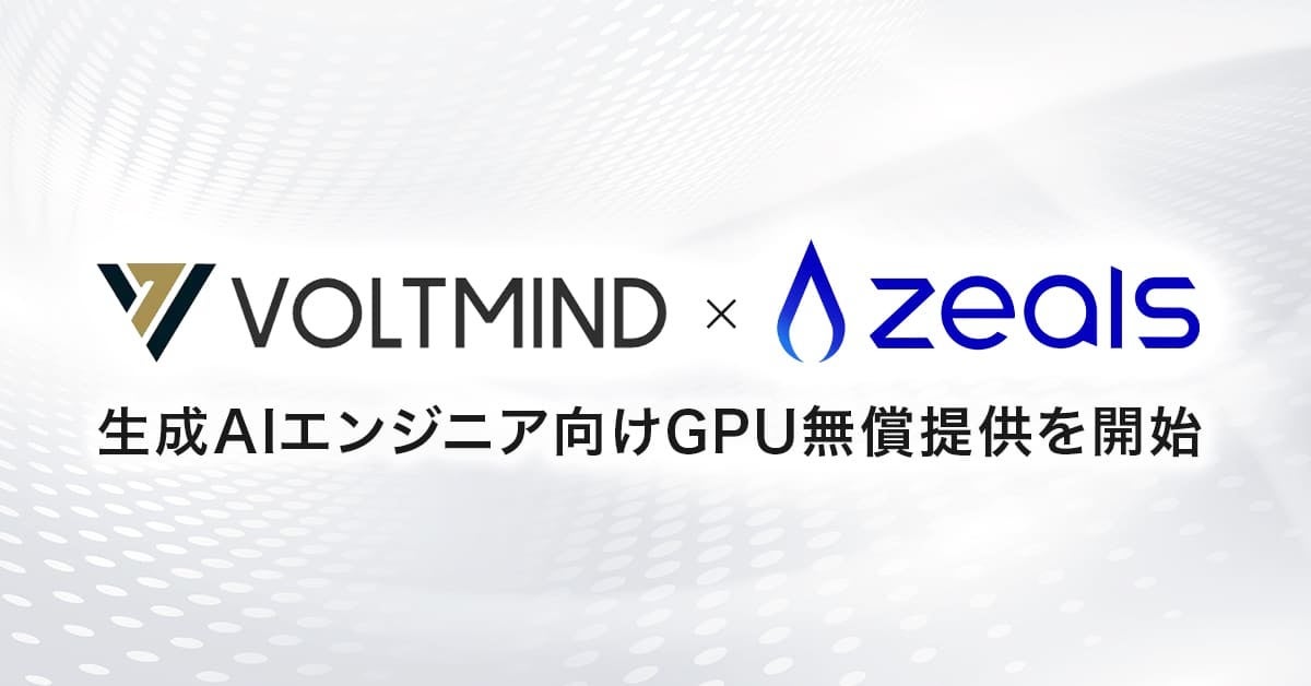 株式会社ZEALS(本社:東京都目黒区、代表取締役:清水 正大、以下 ジールス)は、本日、株式会社VOLTMIND(本社:大阪府豊中市、代表取締役:北森 聖士)と共同で、生成AIエンジニア向けにGPUを無償貸与するプログラムを期間限定で実施することを発表しました。本プログラムでは、「NVIDIA RTX A5000」を活用し、LLM(大規模言語モデル)を含む生成AIの開発環境を支援することで、AIの研究・開発の支援に貢献します。